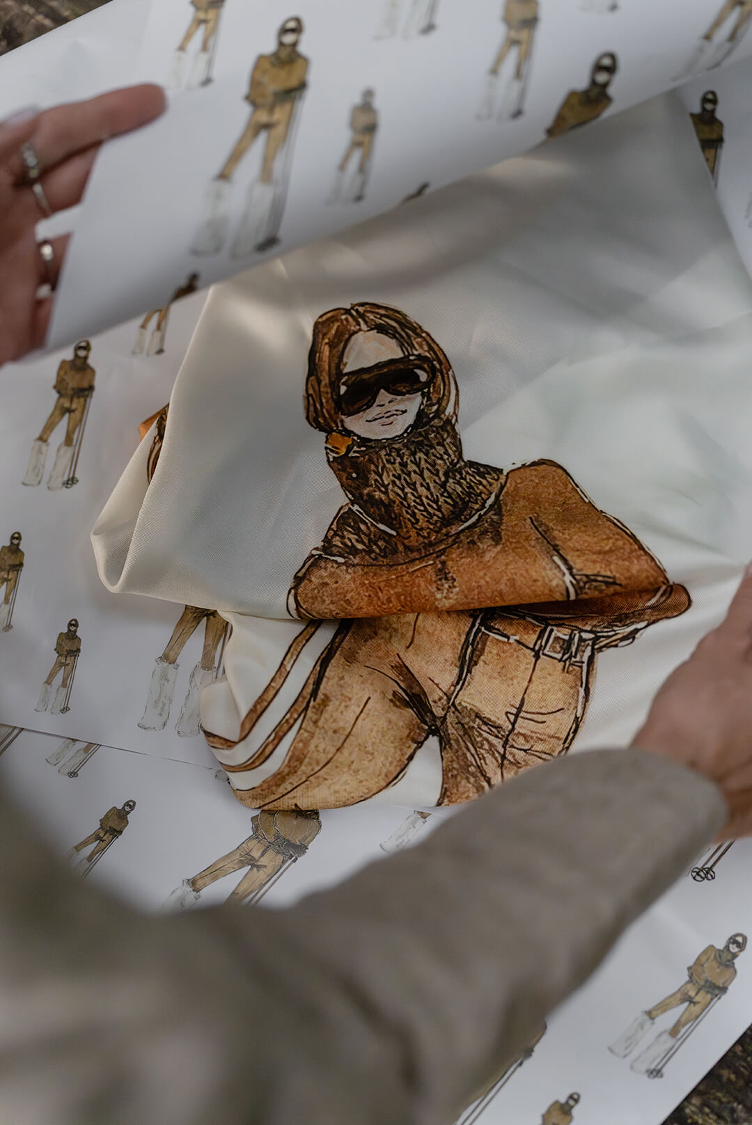 Seidentuch "En Piste" - plus 1 Bogen Geschenkpapier - limited